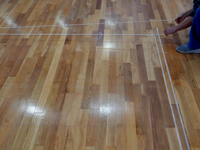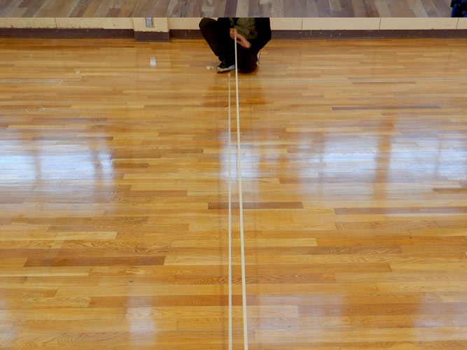 スポーツルールに基づいて、各種コートラインを引いていきます。