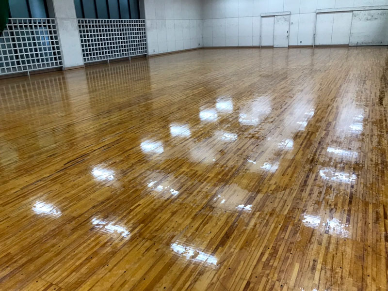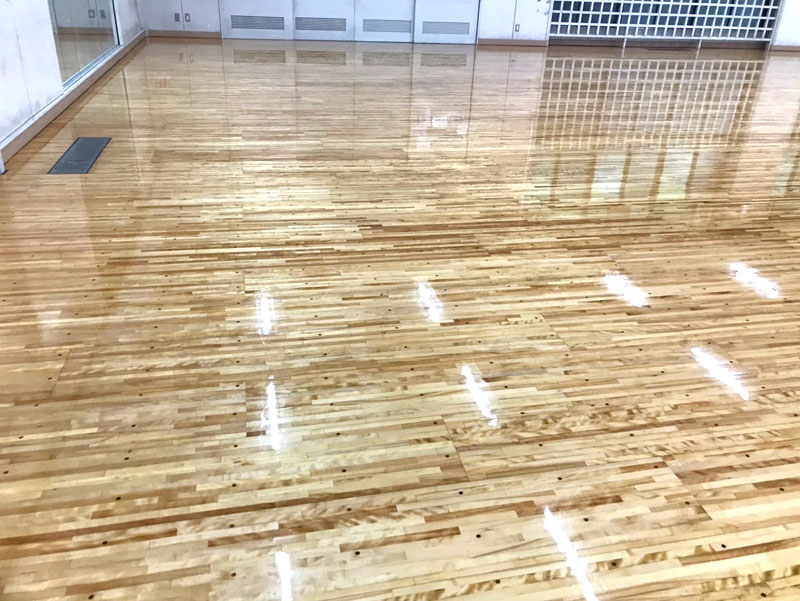 某高校剣道場床面研磨後油変性ウレタン施工事例Construction