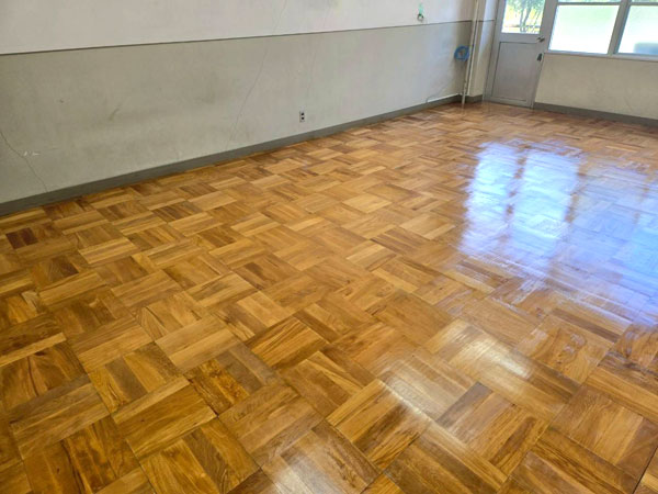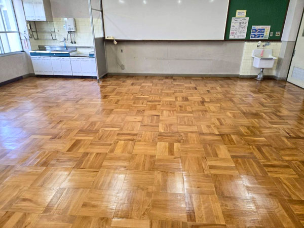 普段のお手入れは、乾拭きのモップ掛けでも大丈夫です。 更に状態をより長く持たせる為に、株式会社堀田ではメンテナンス用水性コートクリーナーのご使用をおすすめしております。 水性コートクリーナーをご使用頂ければ、匂いがほぼせず、一般の方でもあつかって頂くことが可能です。 目に見えない細かい傷もカバーできます。 研磨、塗装作業により床再生を行うので格段に費用を抑えることができ短い日程で作業を完了することが出来ます。 床の状況などにより変動いたします。日程はご相談できますのでご参考にしてください。