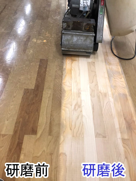 単板という非常に薄い木床でしたが、張替ではなく研磨により床をよみがえさせます。