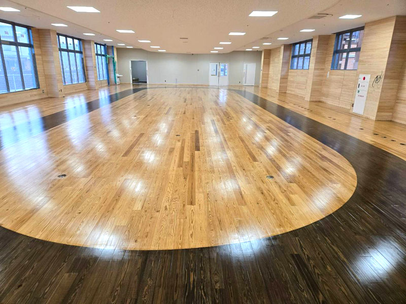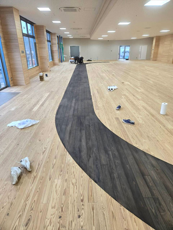 通常の体育館スポーツコート以外にも、このような要望にお応えするには、熟練者による施工が必要となります。