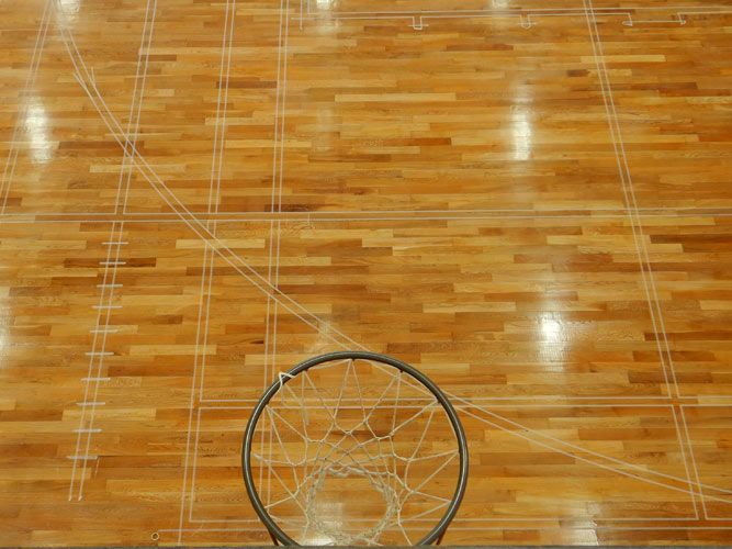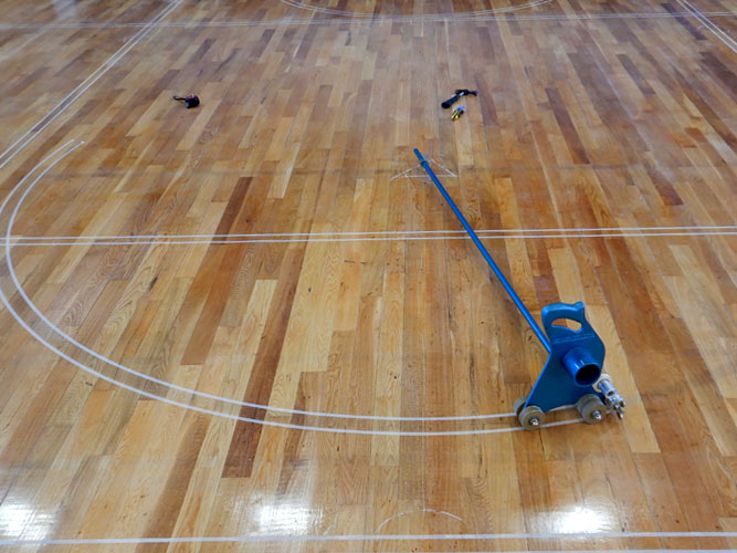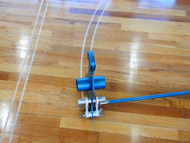 スポーツルールに基づいて、各種コートラインを引いていきます。