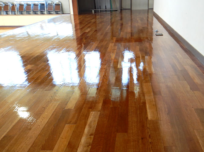 普段のお手入れは、乾拭きのモップ掛けでも大丈夫です。 更に状態をより長く持たせる為に、株式会社堀田ではメンテナンス用水性コートクリーナーのご使用をおすすめしております。 水性コートクリーナーをご使用頂ければ、匂いがほぼせず、一般の方でもあつかって頂くことが可能です。 目に見えない細かい傷もカバーできます。 研磨、塗装作業により床再生を行うので格段に費用を抑えることができ短い日程で作業を完了することが出来ます。 床の状況などにより変動いたします。日程はご相談できますのでご参考にしてください。