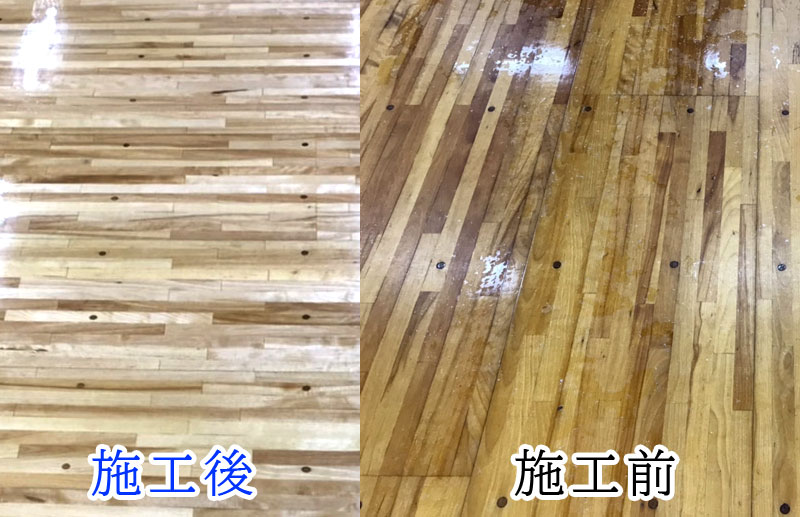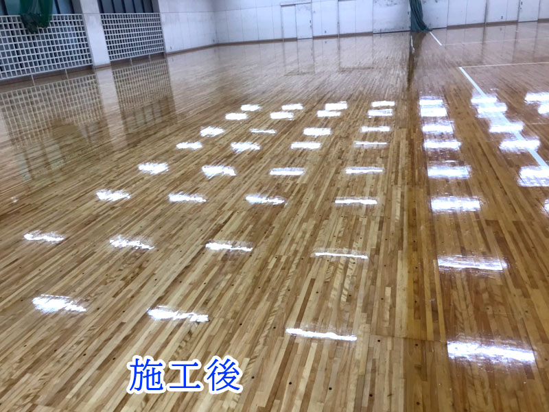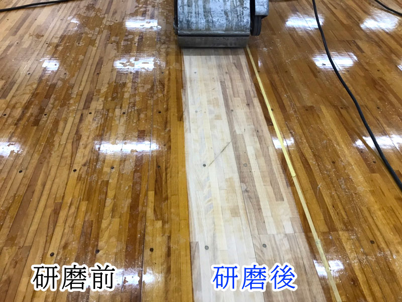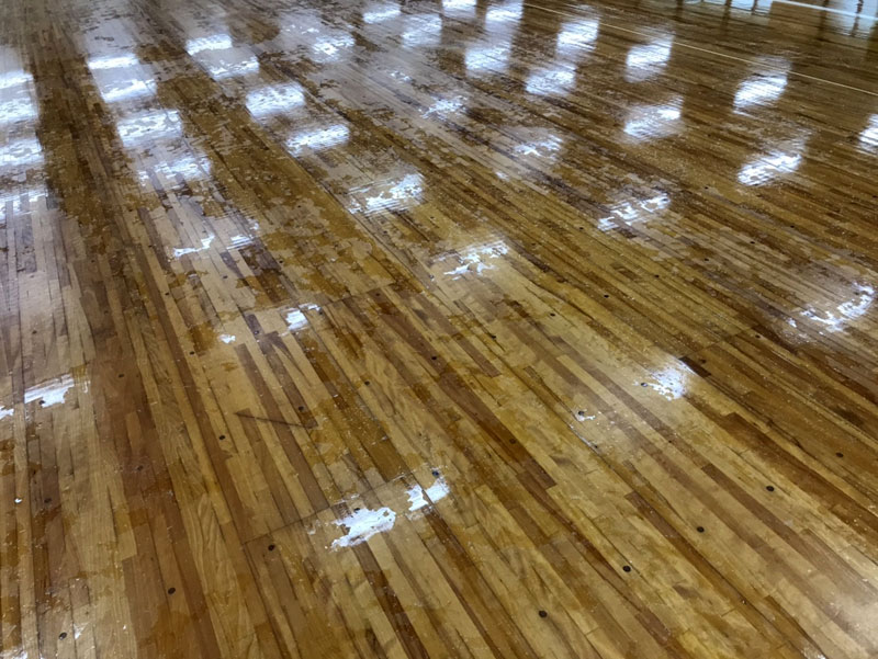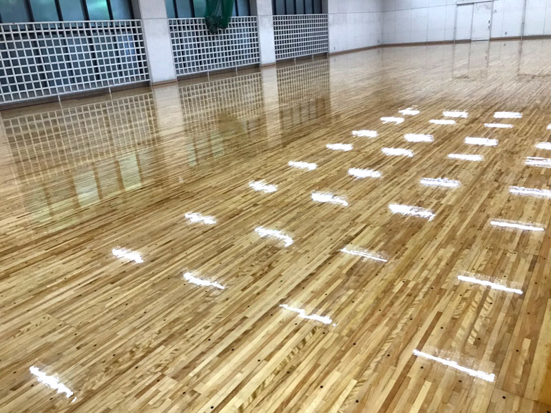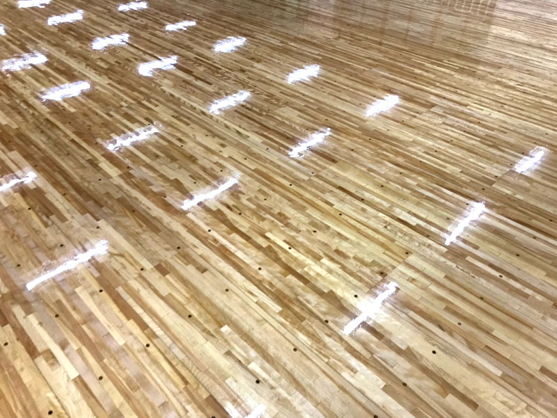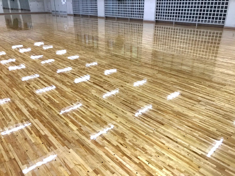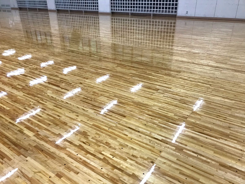 某高校剣道場床面研磨後油変性ウレタン施工事例Construction