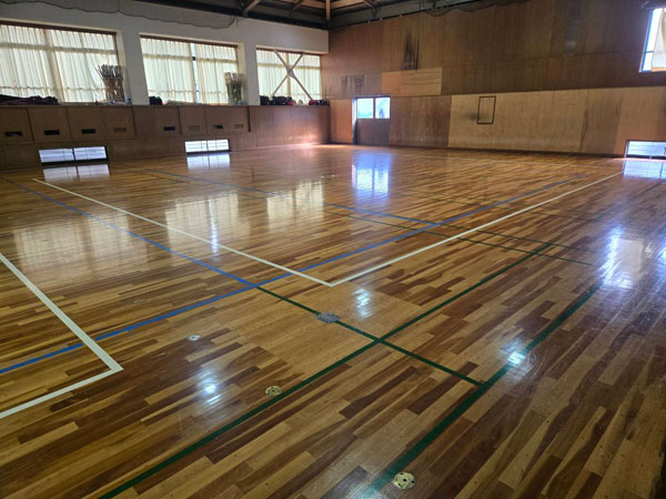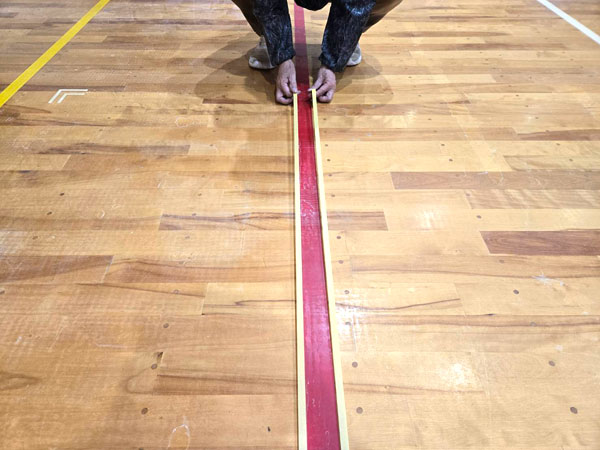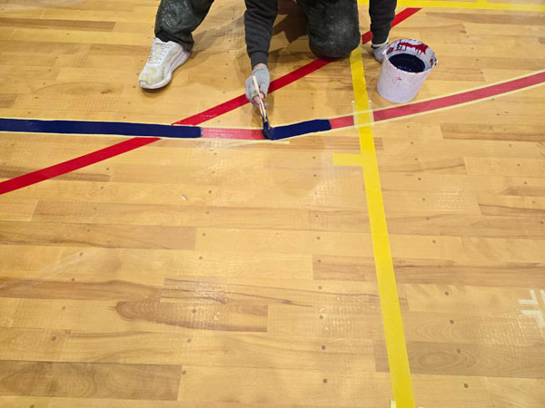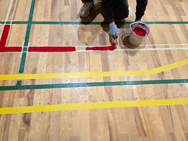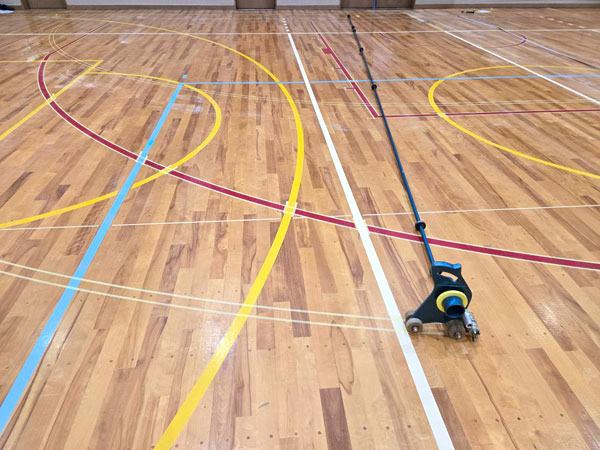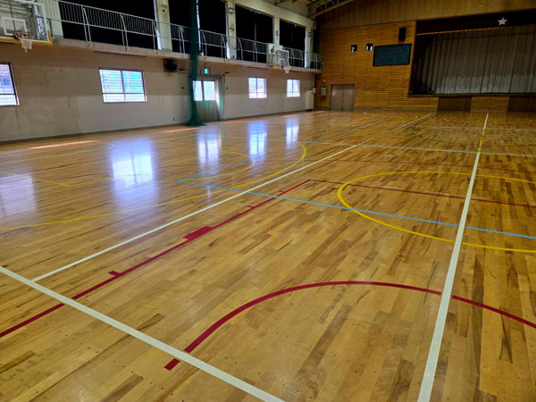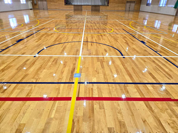 体育館はコートラインの新規ライン引き、引き直しもしました。