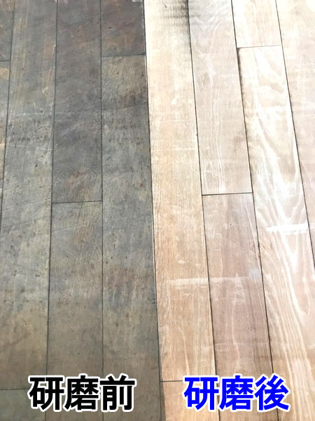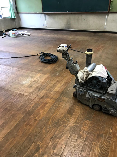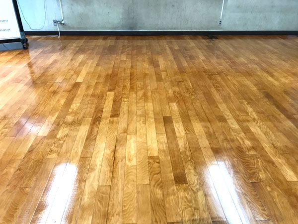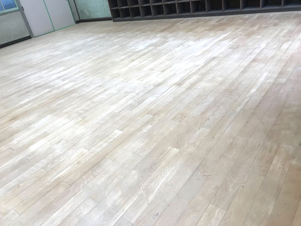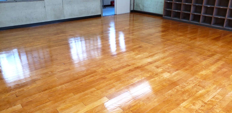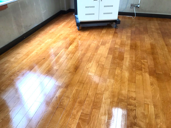 | 施工内容 | 研磨ウレタン塗装 倉庫から教室に変える為二足制のウレタン床に再生施工 |