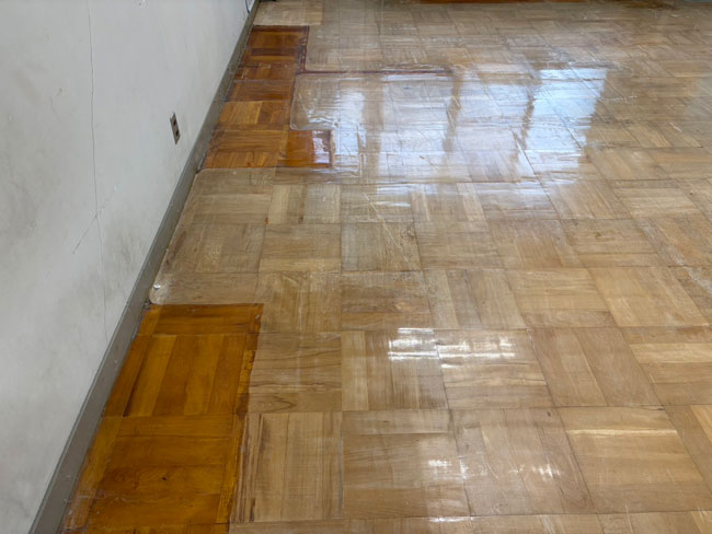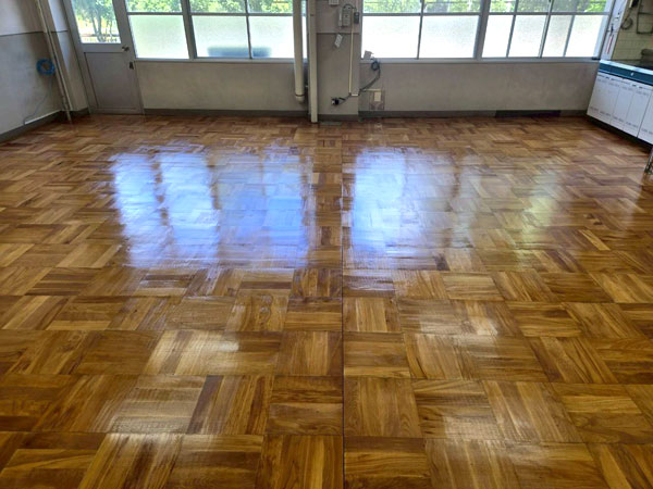 普段のお手入れは、乾拭きのモップ掛けでも大丈夫です。 更に状態をより長く持たせる為に、株式会社堀田ではメンテナンス用水性コートクリーナーのご使用をおすすめしております。 水性コートクリーナーをご使用頂ければ、匂いがほぼせず、一般の方でもあつかって頂くことが可能です。 目に見えない細かい傷もカバーできます。 研磨、塗装作業により床再生を行うので格段に費用を抑えることができ短い日程で作業を完了することが出来ます。 床の状況などにより変動いたします。日程はご相談できますのでご参考にしてください。