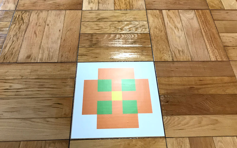 廊下デザイン床張替・体育館制限区域施工事例