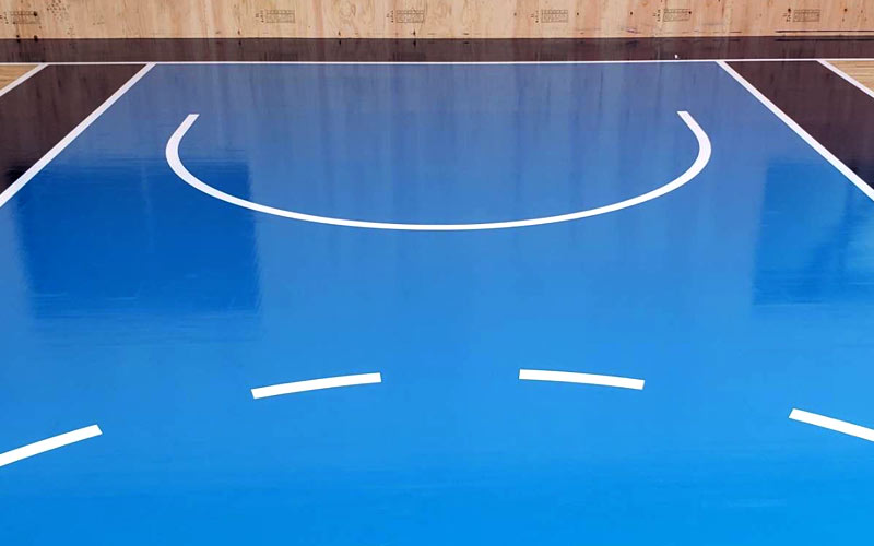 | 施工内容 | 体育館床研磨樹脂塗装ライン引き バスケットボール制限区域 |