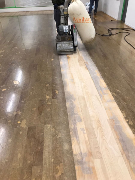 単板という非常に薄い木床でしたが、張替ではなく研磨により床をよみがえさせます。