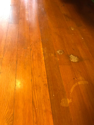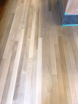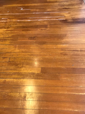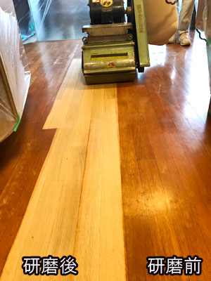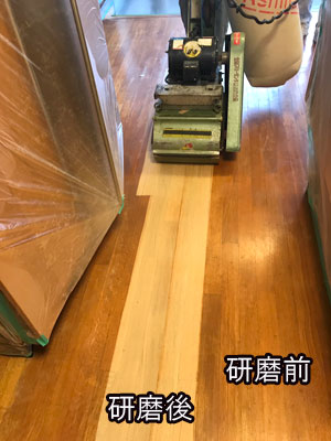 研磨樹脂塗料を繰り返し、床は再生しました。まるで新築のようだと喜んで頂けました。