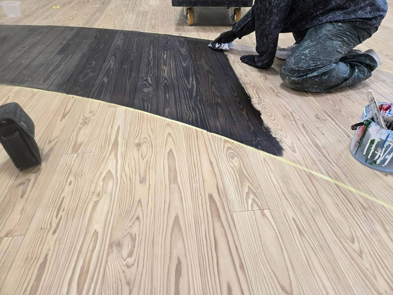 このように、研磨、ライン引き、着色、ウレタン塗装と全てにおいて、会社堀田では熟練者による施工が行えます。