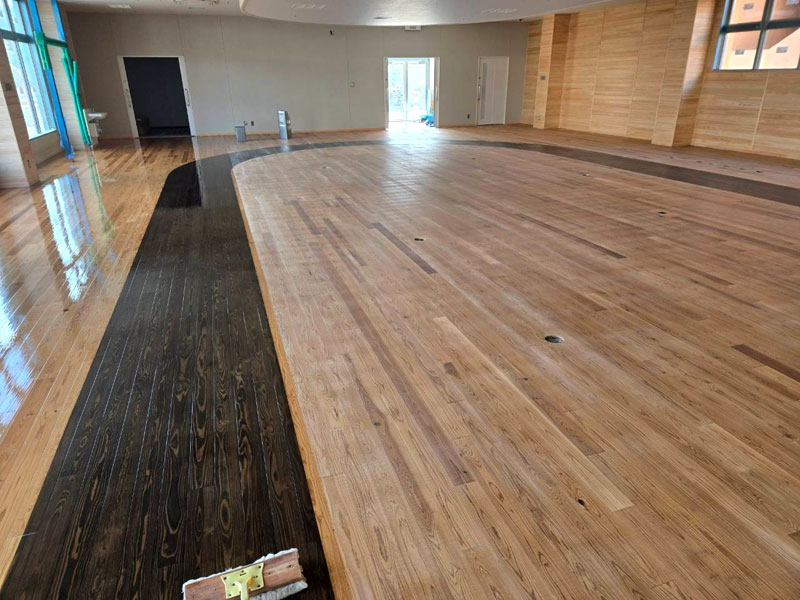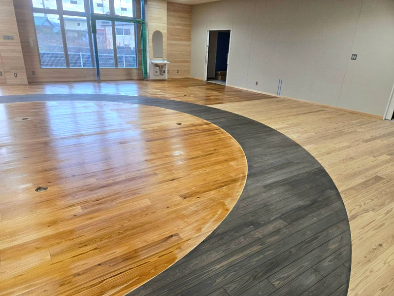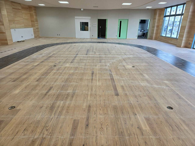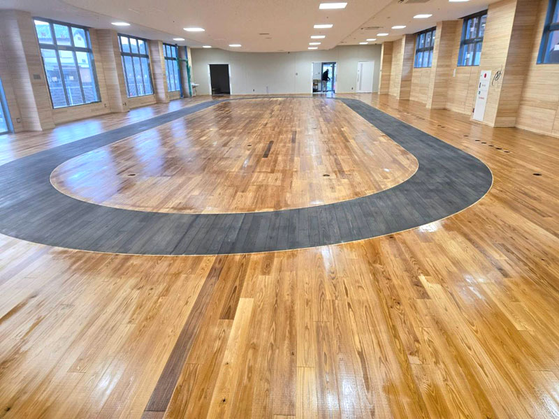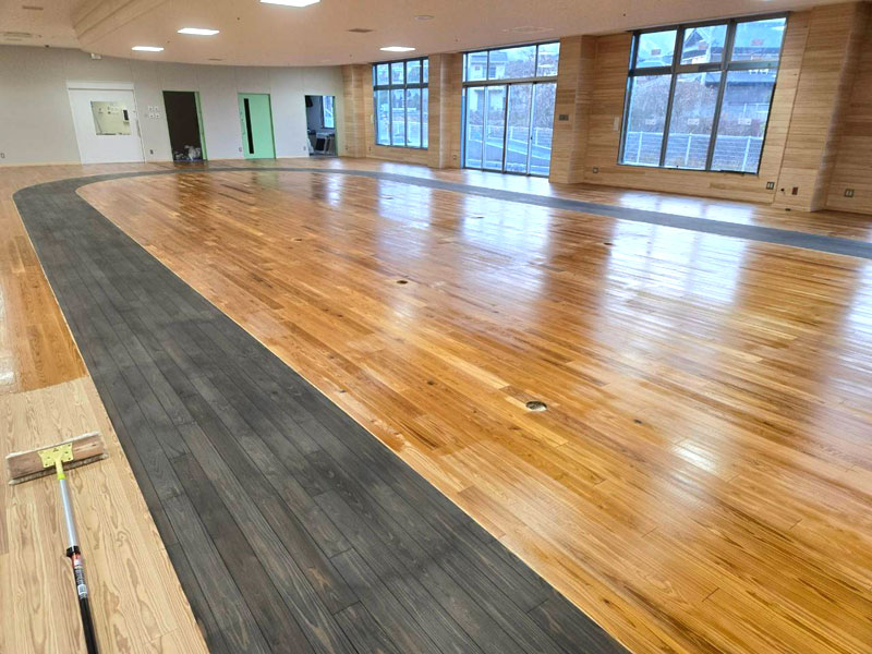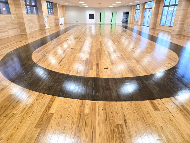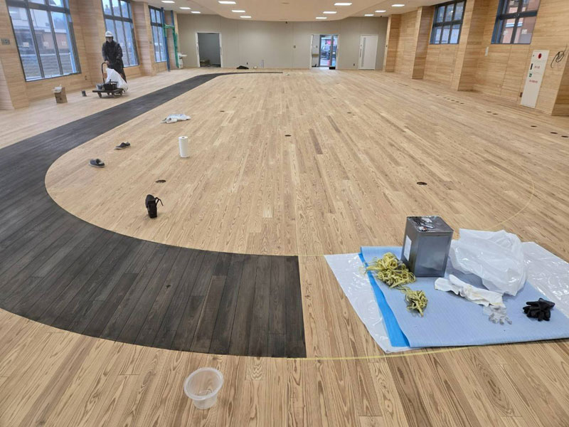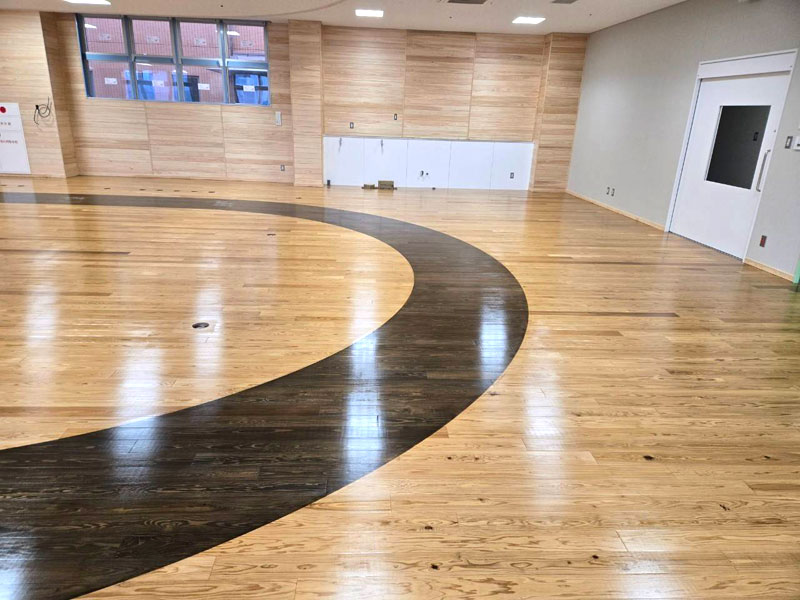 通常の体育館スポーツコート以外にも、このような要望にお応えするには、熟練者による施工が必要となります。
