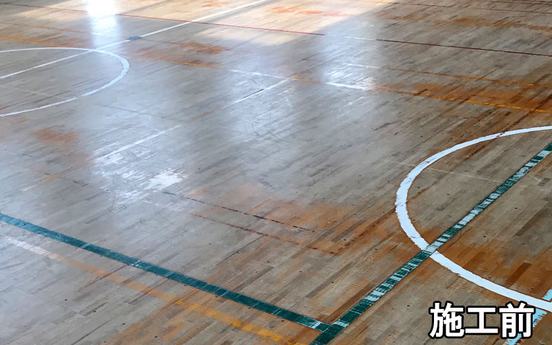 体育館・小学校の床黒ずみメンテナンスKurozumi.Kizu